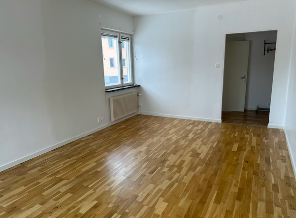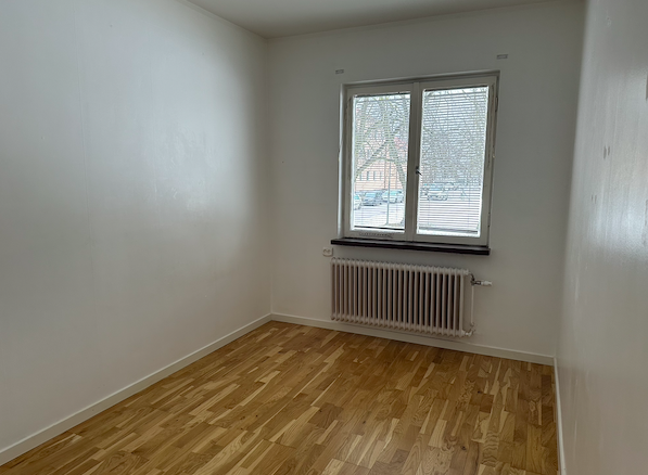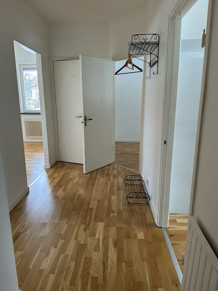 Ljus genomgångslägenhet på våning ett (halv trapp upp) med säkerhetsdörr. Renoverad lägenhet med nytt kök 2018 och nytt badrum 2020. Ljusa väggar i hela lägenheten. Stort ljust vardagsrum med fönster åt två håll. Liten korridor til ett av sovrummen där det även finns garderober längs en vägg. En större garderob i hallen. Diskmaskin och möjlighet att installera egen tvättmaskin i badrummet. Fiber finns.