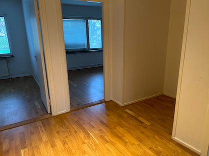 Ljus genomgångslägenhet halv trappa upp med säkerhetsdörr. Helrenoverad 2021 med ljusa väggar i hela lägenheten. Stort kök, vardagsrum och ett separat sovrum. Badrum med dusch. En större garderob och en stor hall.